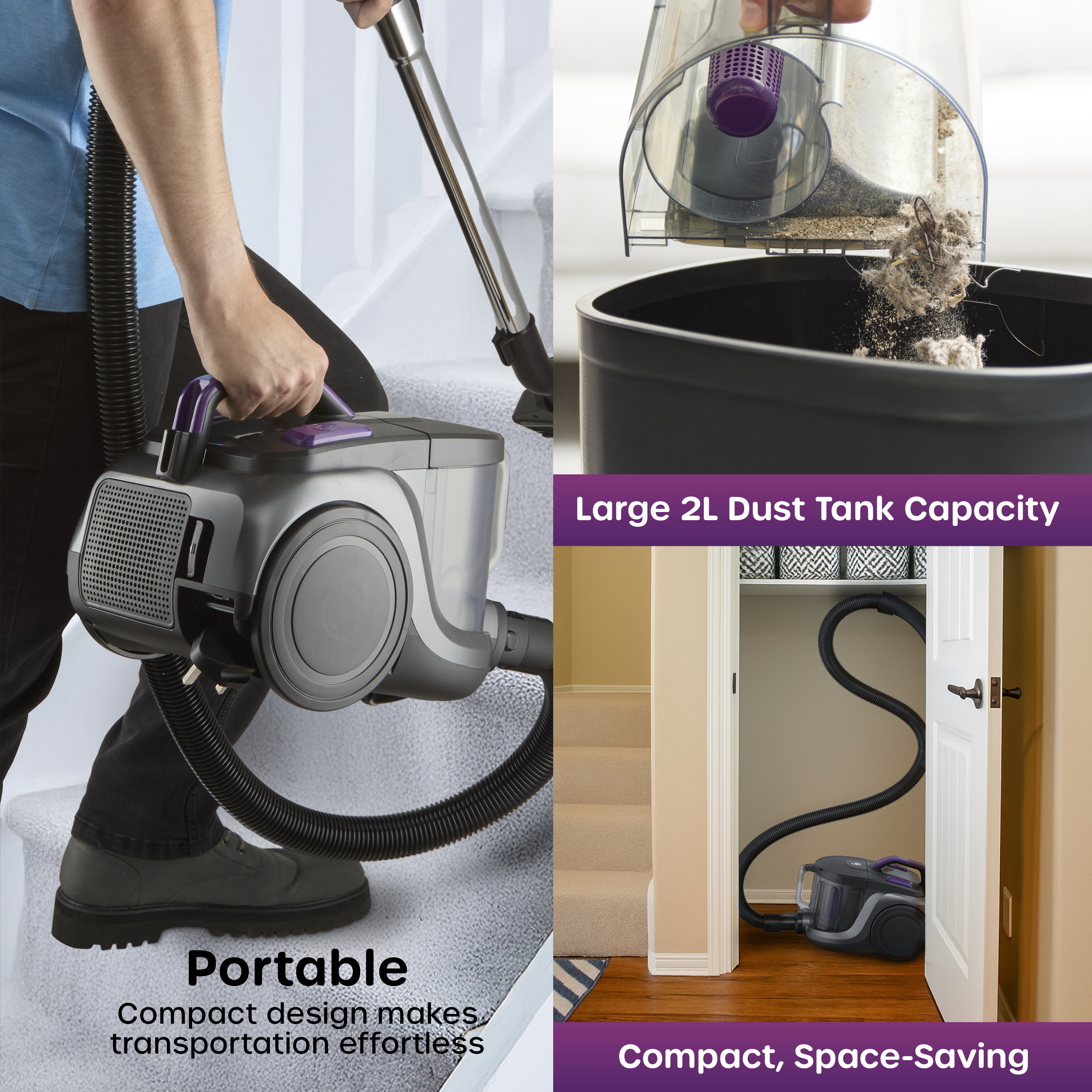 This compact vacuum is designed to fit easily into small cabinets, complete with a retractable power cord to prevent tangling or trailing wires. It’s the perfect space-saver.