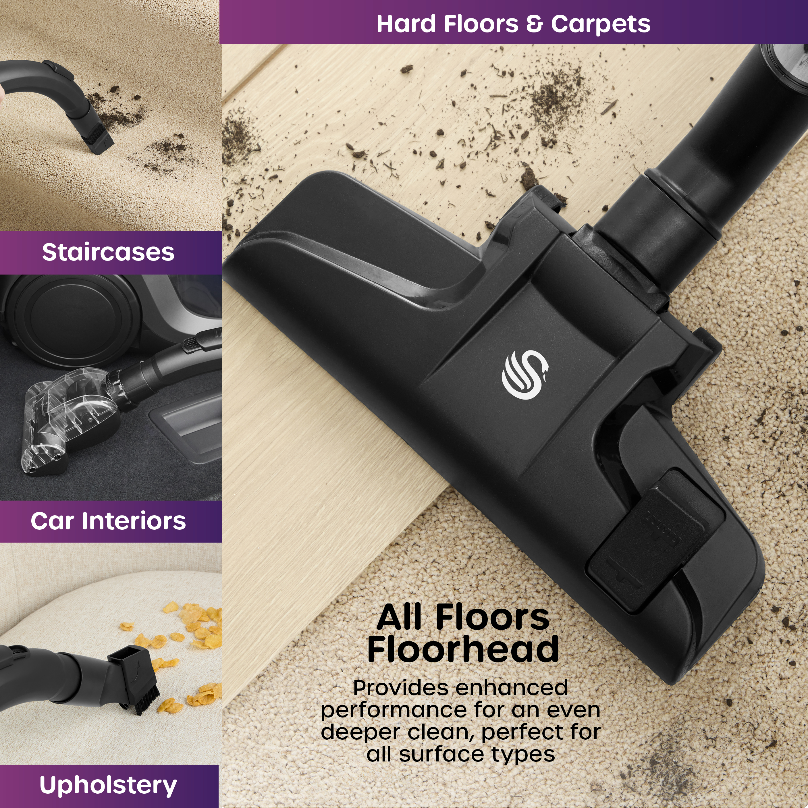The Swan Cylinder Vacuum features powerful suction and a 2-in-1 motorised brush. It gets deep within your floors to effortlessly collect the finest dust and debris for the ultimate deep clean. Suitable for carpets and hard floors.