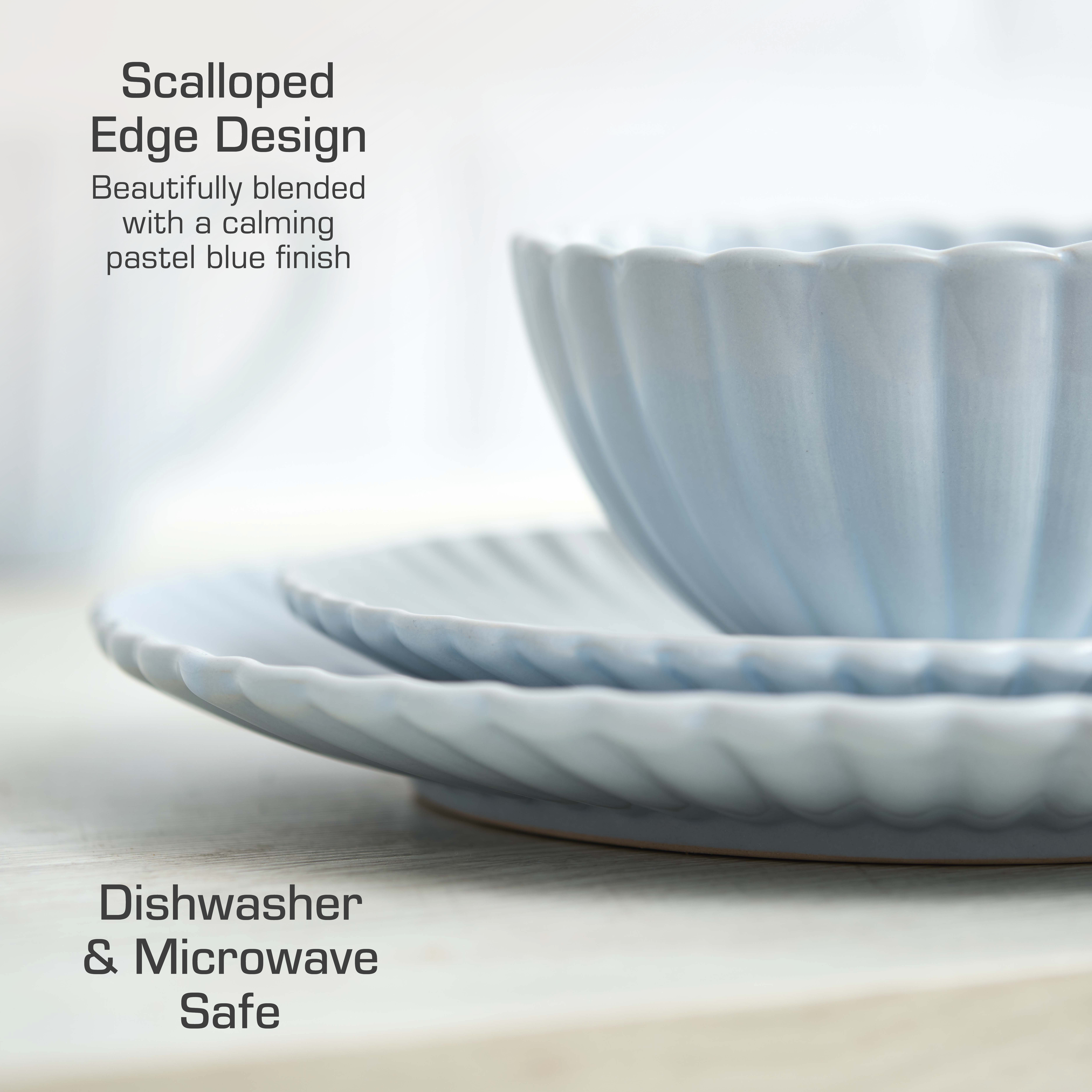 A timeless scalloped edge design gives each piece a soft, flowing profile. Beautifully blended with a calming pastel finish, this stoneware dinner set is suited for casual and special occasions in a variety of home décors.