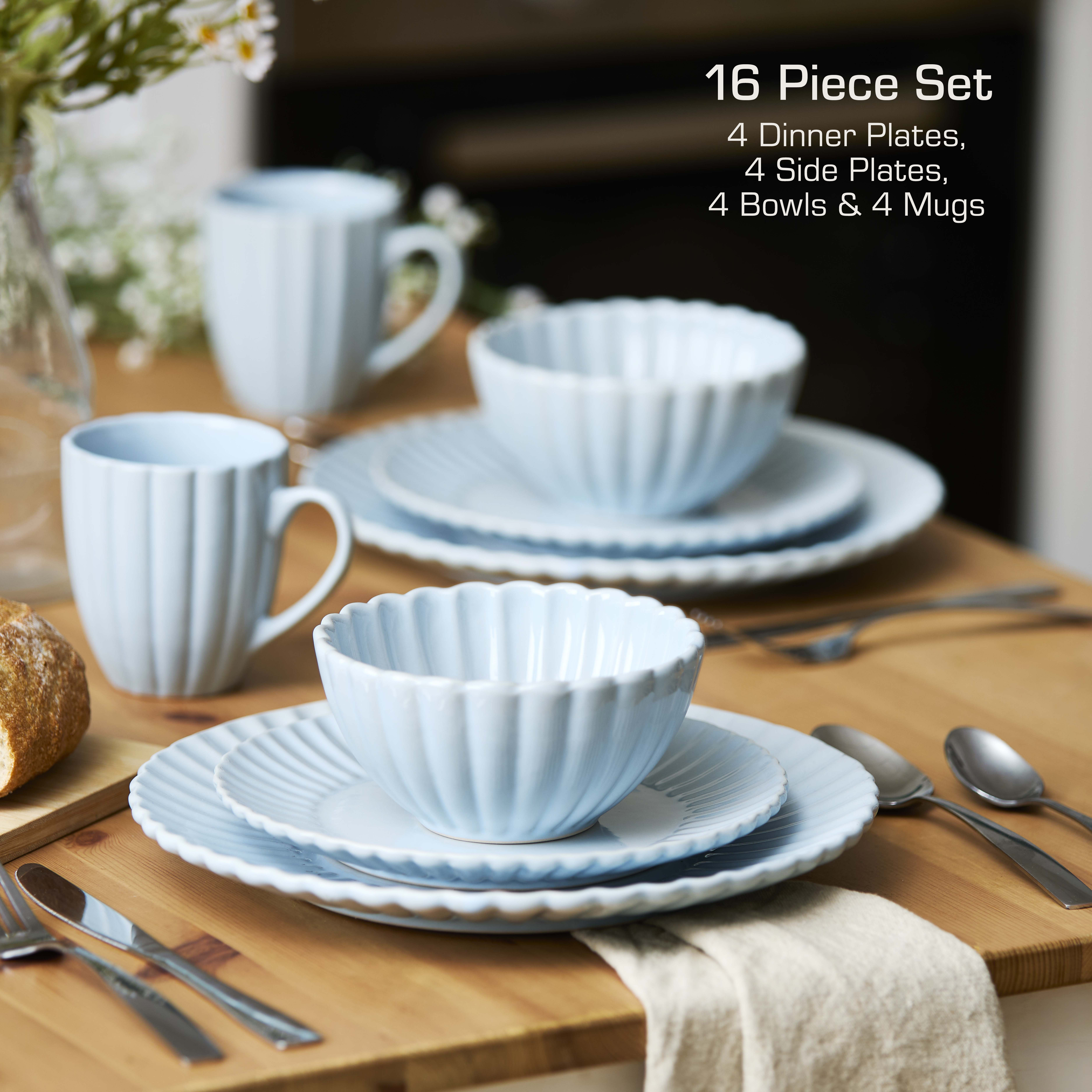 The Swan 16 Piece Scallop Stoneware Dinner Set brings elegance to the everyday. Featuring four dinner plates, bowls, mugs and side plates, each piece blends durability with soft scalloped edges in calming tones. Scratch, chip and crack resistant, this stoneware dinner set for 4 is perfect for daily use. Both microwave and dishwasher for safe reheating and easy cleaning.