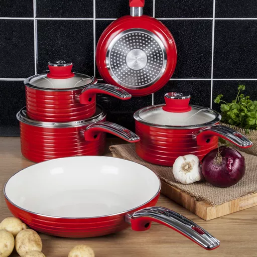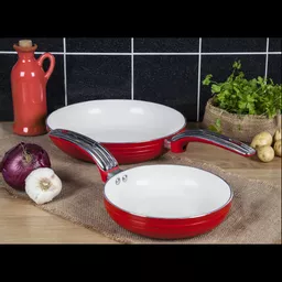 Both pans in this set feature soft-touch, stay-cool Bakelite handles, for comfortable handling, and sturdy, heat-resistant, 3mm thick aluminium exteriors. Their non-stick ivory ceramic inner coating reduces the need for oil, allowing for healthier cooking, and their bonded steel base is suitable for all hob types, making them a good addition to any kitchen. Both pans also require only a simple hand wash to clean, making them practical as well as useful.