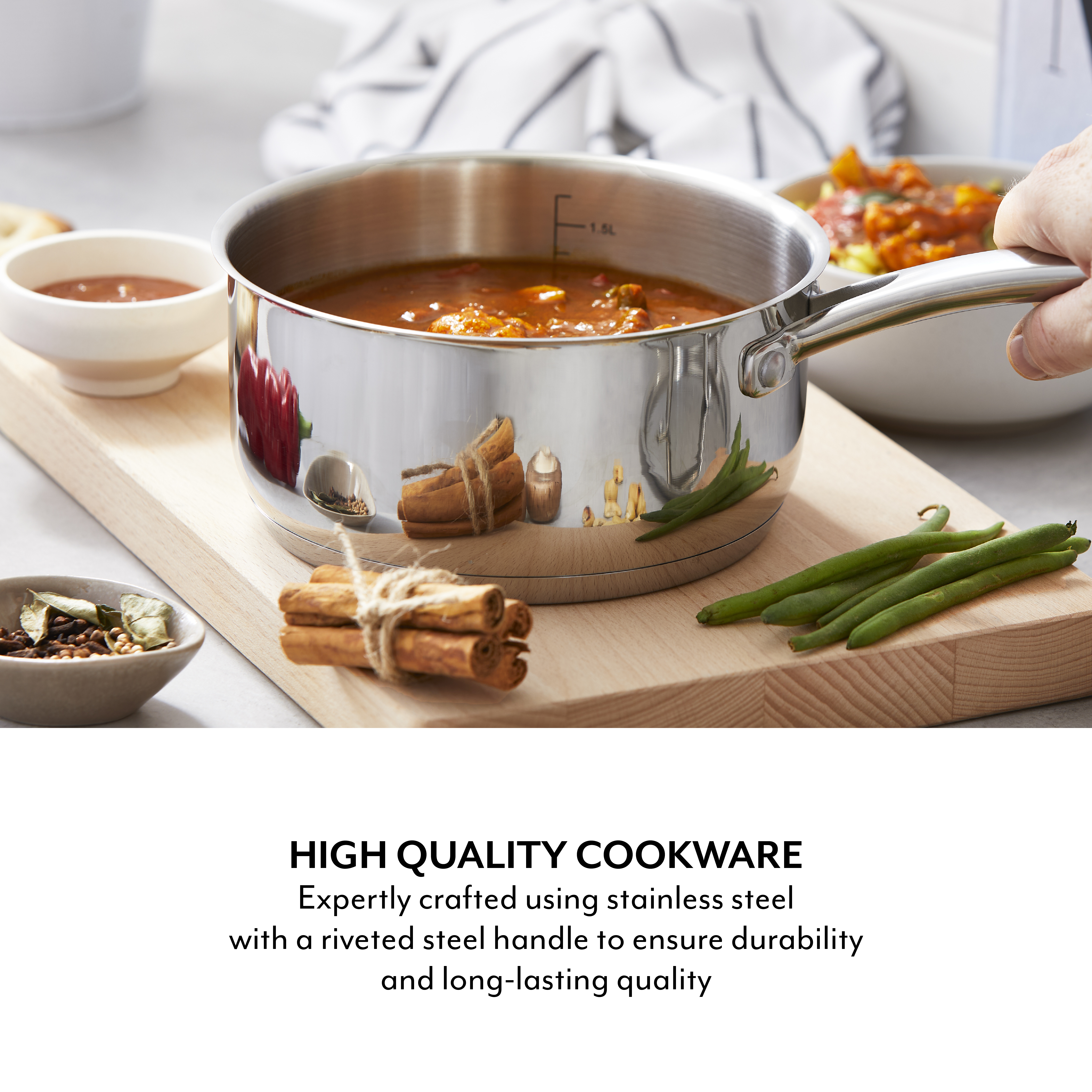 Create the dishes you love, with delicious results. Our pans have been carefully crafted to ensure heat is quickly and evenly distributed, so your food is cooked to perfection with no hot spots. The stainless steel lid helps to lock in heat so you can create the perfect poached egg or whip up a delicious Bolognese that is packed full of flavour. Inner capacity markings allow you to measure ingredients with ease for greater precision when following recipes